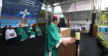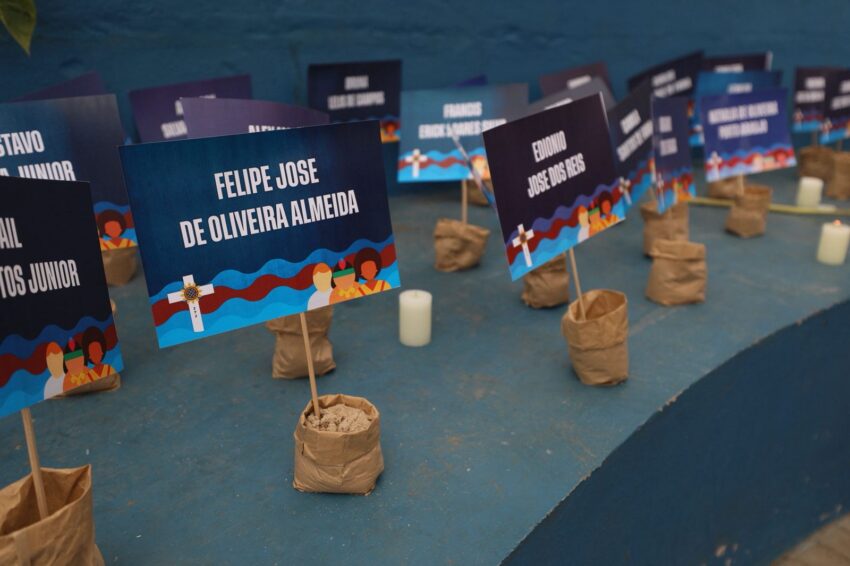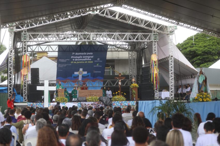A Missa em memória às vítimas do rompimento da barragem com rejeitos de mineração que, em 2019, tirou a vida de 272 pessoas, iniciou a 7ª Romaria pela Ecologia Integral a Brumadinho, neste domingo, 25 de janeiro. Peregrinos das comunidades de fé da Cidade, de paróquias de outros municípios mineiros, familiares das vítimas, cidadãos de muitos lugares, se uniram em oração na Praça Orides Parreiras, onde a Missa campal foi celebrada, com a presidência de dom Joel Maria dos Santos, bispo auxiliar da Arquidiocese de Belo Horizonte, e concelebrada por dom Francisco Cota, bispo diocesano de Sete Lagoas, presidente da Comissão Episcopal para a Ecologia Integral e Mineração do Regional Leste 2 da Conferência Nacional dos Bispos do Brasil (CNBB Leste 2). Antes, foram partilhadas 272 mudas de plantas diversas, referência às 272 pessoas que perderam a vida com o rompimento da barragem, em 2019 – uma tragédia que trouxe ainda graves impactos socioambientais às comunidades próximas ao Rio Paraopeba, contaminado com rejeitos de mineração.