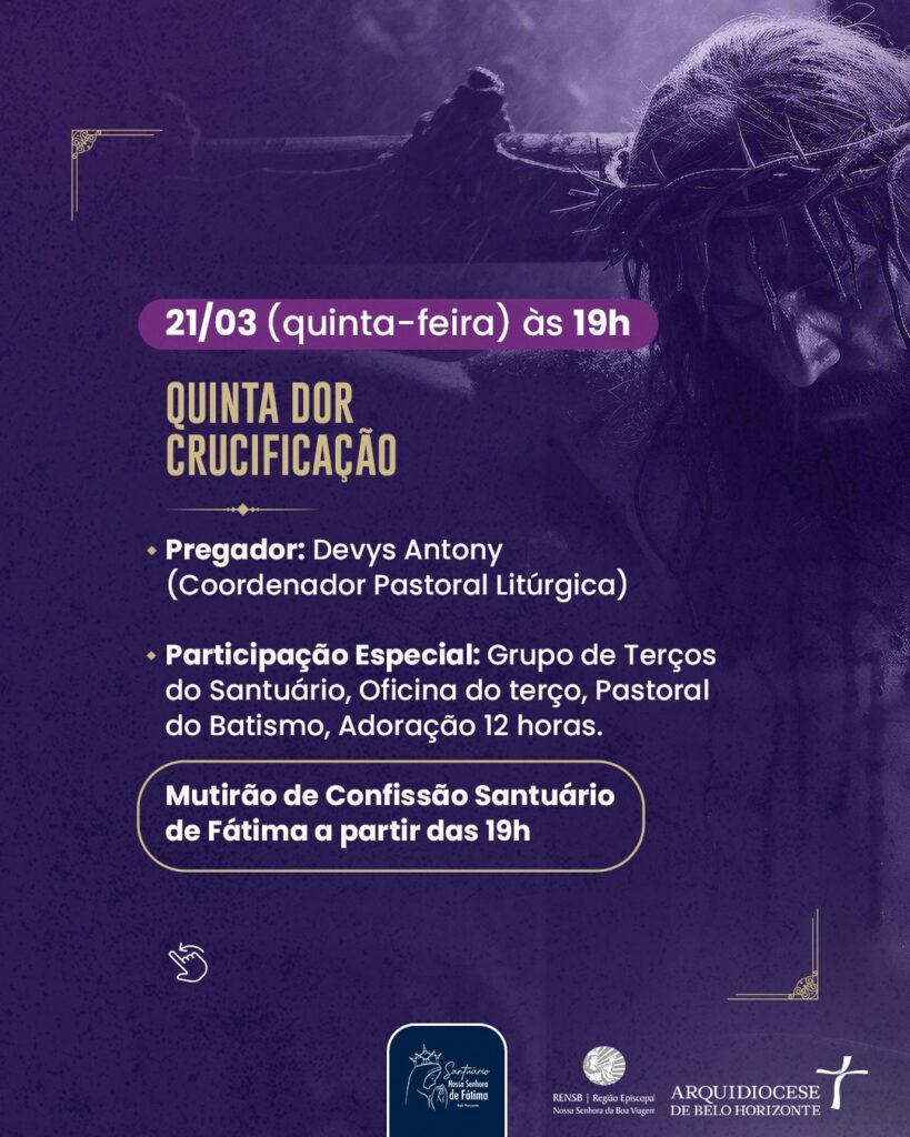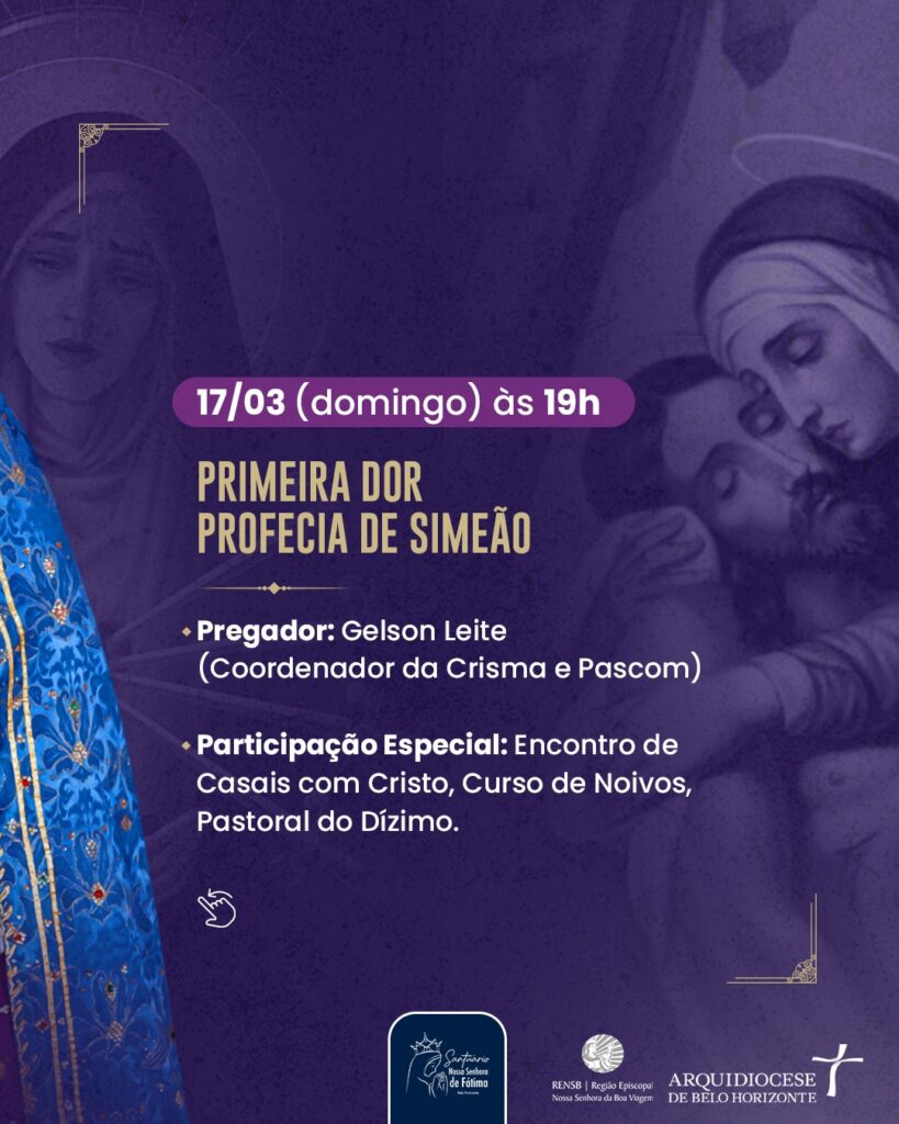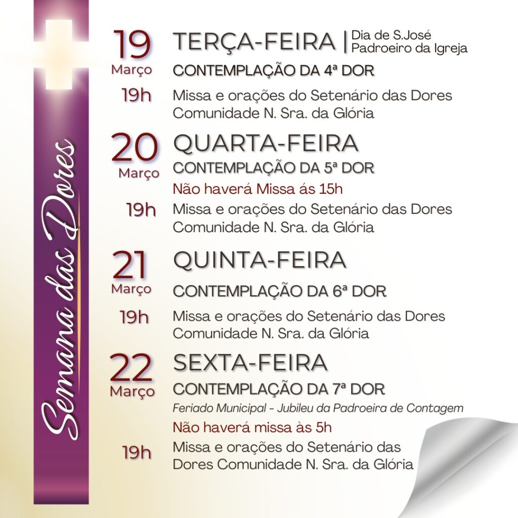 – Dia 20/03/24: Quarta-Feira da Semana das Dores – Celebração Penitencial, às 19h.