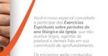 Em comunhão com a Igreja no Brasil, o Vicariato Episcopal para Ação Missionária (Veam) da Arquidiocese de Belo Horizonte convida as comunidades de fé para participarem dos encontros de Exercícios Espirituais sobre os períodos do ano litúrgico da Igreja, no Centro Missionário Santa Teresinha (sede do Veam).